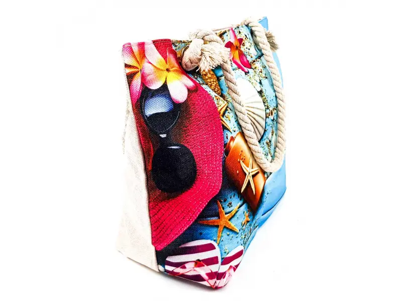 Плажна чанта. Нова дамска плажна чанта с мотив морксото дъно , шапка и очила. Интересна плажна чанта със здрави и удобни дълги дръжки. Лятна чанта от онлайн магазин ePazar.bg