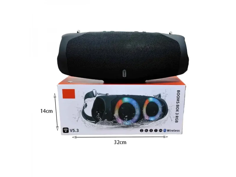 Голяма портативна мощна блутут колона Booms Box 3 RGB - Черен
