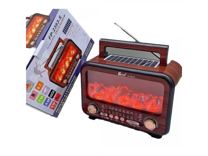 Насладете се на уникално музикално изживяване с Bluetooth високоговорител FP-2393-S, който съчетава модерни технологии и иновативен дизайн. Със стилен външен вид, вдъхновен от камина с горящи пламъци, тази колонка създава уютна атмосфера, докато осигурява отлично качество на звука.Характеристики:Иновативен дизайн: Модерният стил на колонката с ефект на горящи пламъци добавя усещане за уют и е идеален акцент за всяко пространство, независимо дали е у дома, в градината или на пътувания.Мултифункционалност: Високоговорителят FP-2393-S предлага възможности за свързване чрез Bluetooth, TF карта, USB, AM, FM, SW 1-2-4 BANDS и AUX вход, като ви позволява да се наслаждавате на музика от различни източници.Ясен и мощен звук: С изключителен бас и ясен звук, този високоговорител осигурява плътен звук с отлична динамика, което прави музикалното изживяване още по-интензивно.Дълготрайна акумулаторна батерия: Вградената батерия с капацитет от 1200mAh предлага продължителна работа, така че да се наслаждавате на музика без прекъсване.Музикална мощност: Колонката предлага 7W мощност, която гарантира отлична производителност на звука.Размери: Компактни размери от 250x145x180 мм, които правят колонката удобна за пренос и употреба навсякъде.FP-2393-S е идеалното решение за тези, които търсят комбинирано изживяване – качествен звук и красив дизайн. Възползвайте се от неговата мултифункционалност и удобство и създайте перфектната музикална атмосфера.