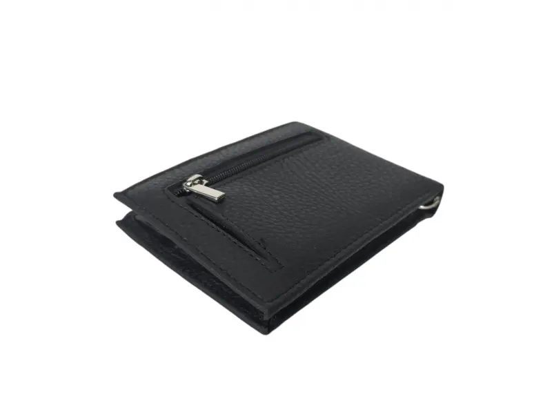 Кожен мъжки портфейл с щипка - Мъжки портфейл от естествена кожа. - Отделение за банкноти с щипка. - Слотове за карти и лични документи. - Външно отделение с цип.