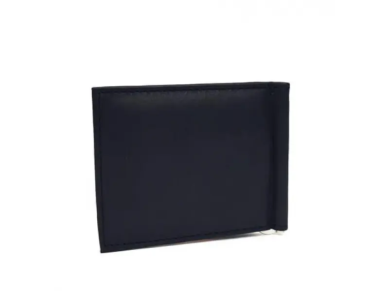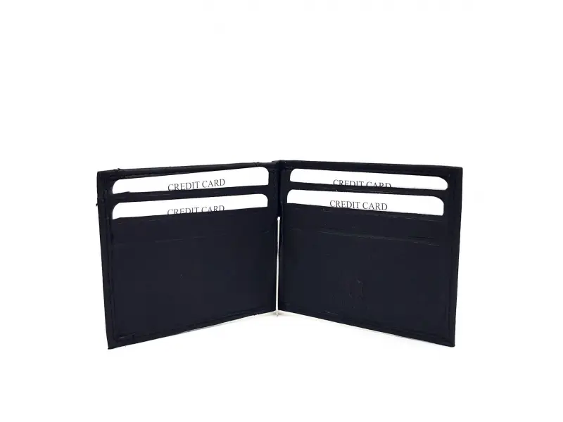 Мъжки портфейл тип щипка за пари в черен цвят от естествена кожа мека на допир. Модел със слотове за банкови карти и визитки , лични документи и отделение за монети.