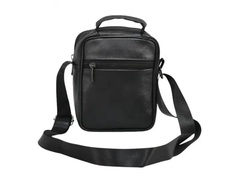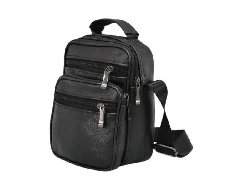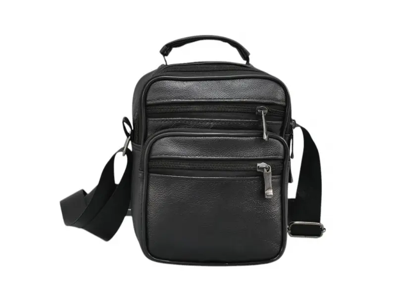 Мъжка чанта от кожа - Едно основно отделение с цип. - Три предни джоба с цип. - Заден джоб с цип. - Регулираща се презрамка.