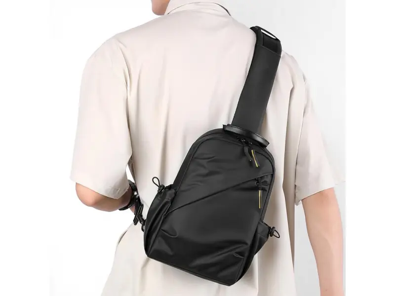 - Мъжка чанта, която може да се носи през гърди, рамо или гръб тип раница.