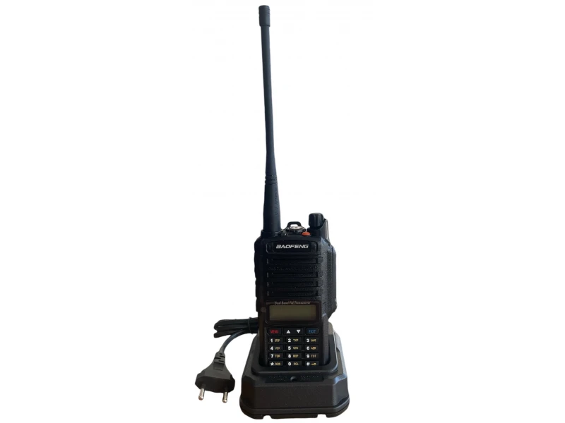 Baofeng UV-9R е мощна радиостанция с отличен звук. Вграденият микрофон е високочувствителен, което означава че изпратеният сигнал е с максимално добро качество. Говорителите също са изработени по нова технология така, че получените съобщения да са без глъхнене, смущения и страничен шум. Отделно е предвидена солидна защита за аудио мембраните, която ги предпазва при влажно и мокро време.Моделът идва в комплект с двубандова антена и батерия с капацитет 8000mAh. С един пълен заряд ще може да разчитате на около 12 часа интензивна работа. След това ще трябва да презаредите в настолното зарядно, което също е част от комплекта. Предвидена е възможност да зареждате само батерията и по този начин, ако имате резервна, да продължите да ползвате станцията за комуникация.Самият корпус е изработен от здрава пластмаса. В предната му лицева част са разположени двуредов LCD екран и клавиши. Дисплеят показва всички активирани функции плюс настроените канали и честоти, на които говорите. С клавишите можете да правите различни настройки в менюто на устройството, включително да настройвате желана честота.Обхватът е забележителен - 8-10 км в гора или пресечена местностВ горната част на станцията, непосредствено до антената е разположен фенер. Той се активира от отделен бутон встрани на уоки-токито. Има два режима на светлина, съответно постоянна и премигваща, която се използва най-вече в аварийни ситуации за отбелязване на местоположение или близка опасност.С оранжевото малко копче до фенера може да изпратите SOS сигнал на канала, който е избран за комуникация. Това отново е предназначено за бедствия и аварии, когато човек има нужда от спешна помощ. Последният бутон в редицата е за включване и изключване на станцията и регулиране на силата на звука.В лявата част на корпуса е разположен PTT бутона, с който изпращате сигнал. Той трябва да е постоянно натиснат, докато говорите и да бъде пуснат, когато съобщението завърши и трябва да бъде изпратено. Отново тази функцията е предназначена главно за ситуации на бедствия, когато липсва мобилен сигнал и няма как по друг начин да се информирате за последните събития. При задържане на същото копче се активира звукова аларма, придружена с премигваща светлина от фенера.В дясната страна на корпуса е предвиден конектор за програмиращ кабел, слушалка или трубка говорител. Изходът е защитен с капаче, което е здраво затегнато с винт към корпуса. По този начин станцията става водоустойчива.Важна характеристика е богатото на функции и възможности меню. То позволява да превключвате между висока, средна и ниска предавателна мощност в зависимост от конкретната ситуация и дистанцията, която трябва да се покрие. Предвидена е функция за гласова активация и заключване на клавишите, режим за пестене на батерията и още много други, които може да видите изредени по-долу в описанието.Технически характеристики:Честотен обхват: 136-174/400-520MHz;Брой канали: 128 (50 CTCSS и 104 CDCSS); Канален интервал: 25KHz/12.5KHz;Работно напрежение 7.4V DC ± 15%;Стабилност на честотата ± 2,5ppm;Батерия: 8000mAh;Съвместим с американския военен стандарт (Mil-STD-810C / D / E);Трансмитер (EIA-RS 316B STANDARD);RF изходна мощност 10W;Модулация Чувствителност;водоустойчивост: IP67;Двойна лента, двоен дисплей и двоен режим на готовност;Превключване между висока и ниска мощност;Функция VOX;Избор на широк/тесен диап
