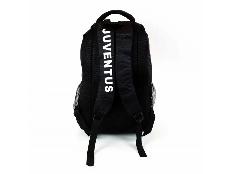 Училищна раница на футболен клуб Ювентус в черно - сив цвят с емблемата на клуба. Интересна раница с три отделения - едно голямо , едно средно и едно малко , регулиращи се презрамки с надпис върху тях - Juventus , удобен дишащ гръб , стабилна дръжка за носене и още една за закачане. Страхотен подарък за феновете на футбола и в частност клуб - Ювентус.