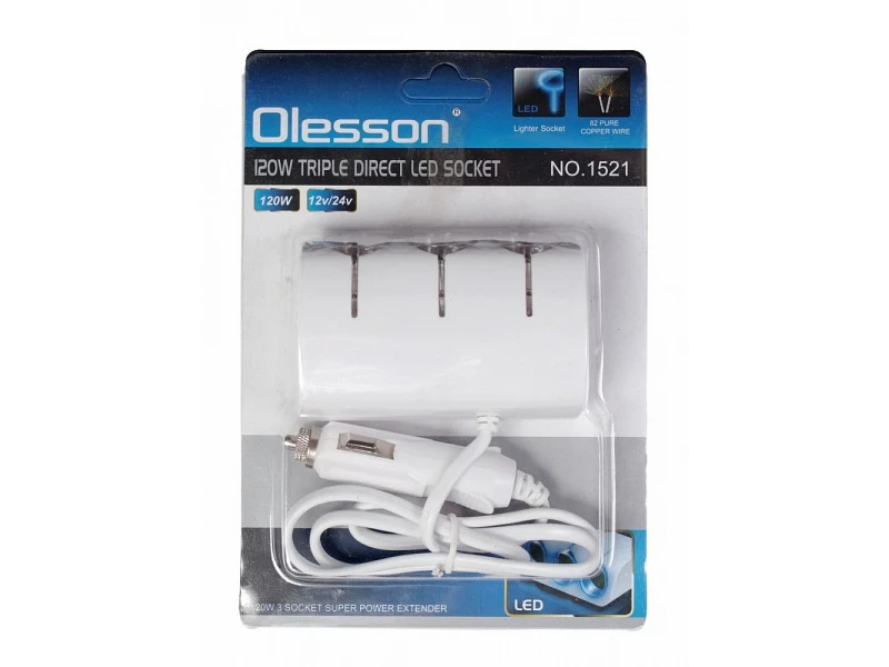 • Разклонител на запалка Olesson 1521 с кабел 3 гнезда