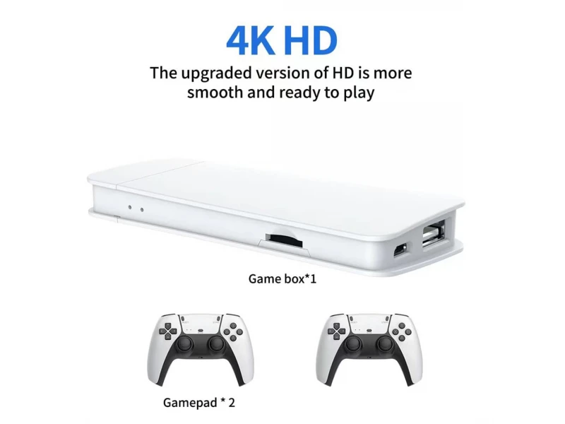 Game Station Game Stick М15 4K - Ретро гейминг в ултра висока резолюция 🎮✨Пренесете се назад във времето с Game Station Game Stick М15 4K, която съчетава носталгията по класическите игри с модерната 4K технология. С повече от 30 000 предварително заредени ретро заглавия, два безжични джойстика и Plug & Play свързване, тази конзола е идеалният подарък за всеки геймър.Обширна библиотека от класики 🎯 Над 30 000 ретро игри от NES, SNES, Sega и други Категории за всеки вкус: платформени, приключенски, спортни и аркадни заглавия Интуитивно меню за бърз достъп и търсене Лесно превключване между игриПросто изберете любима игра и започнете - без допълнителни инсталации или ъпдейти.Кристално 4K качество и безжичен комфорт 📺 4K Ultra HD за детайлно и живо изображение Два безжични джойстика с обхват до 10 м за пълна свобода на движението HDMI Plug & Play - свързвате към телевизор, монитор или проектор и играта започва мигновеноЛинията между вас и играта е само 1 USB кабел за захранване и един HDMI кабел към екрана.Компактен дизайн и портативност 🌍 Малък и лек корпус, подходящ за пътуване и гости USB захранване - използвайте power bank, телевизор или компютър за захранване Перфектен за дома, почивките и забавления на открито Идеален подарък за цялото семейство 🎁 Подходящ за деца, тийнейджъри и възрастни ретро фенове Общи игри за забавно състезание или кооперативно изживяване Възможност за съвместно прекарване на часове пред екрана