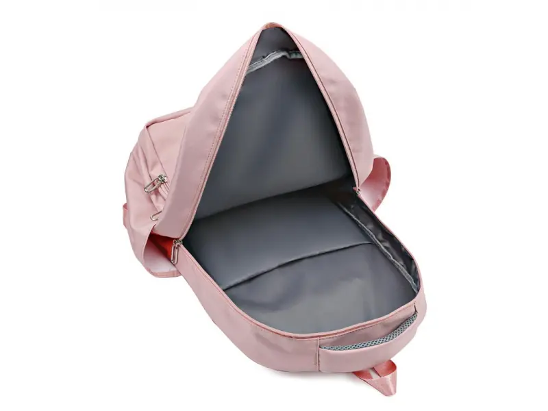 Розова раница подходяща за училище - Голяма раница за училище или спорт. - Две отделения с цип. - Вътрешен джоб без цип. - Два предни джоба с цип. - Странични отделения за бутилки. - Дръжка за носене в ръка. - Регулиращи се презрамки.