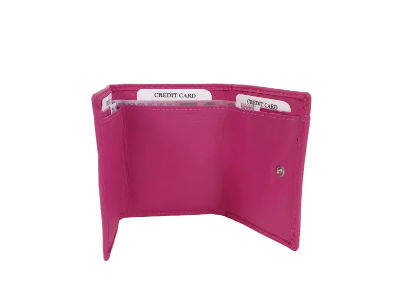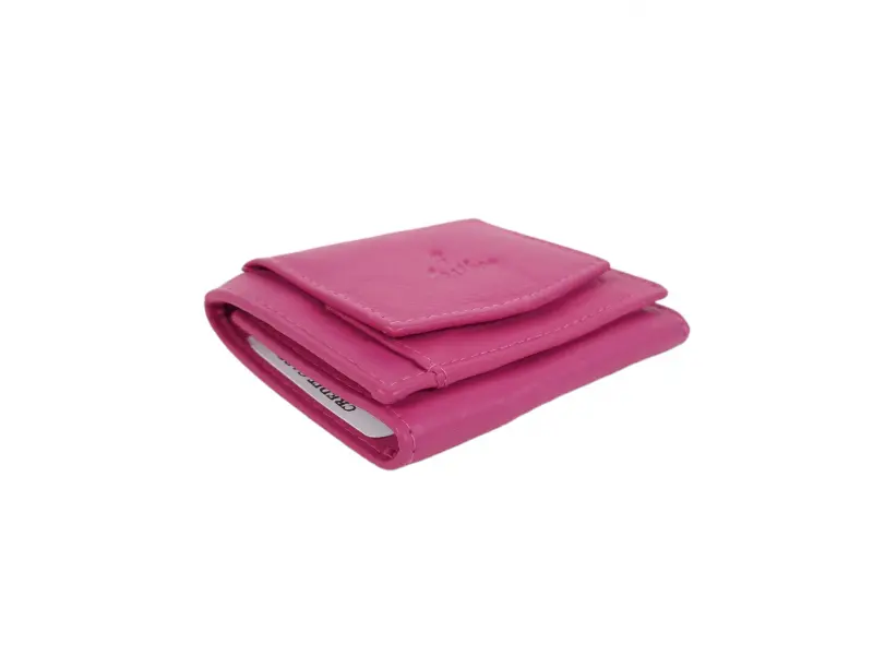 Кожено дамско портмоне в уникален розов цвят - Дамско портмоне от естествена кожа. - Закопчаване с копче тик - так. - Отделения за карти. - Отделение за банкноти. - Монетник с копче тик - так.