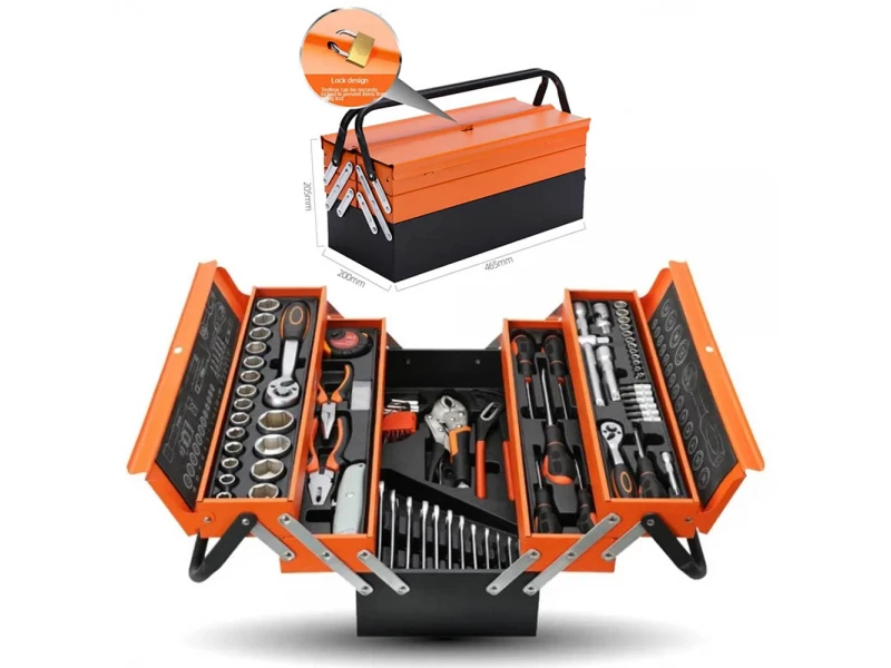 Здрава метална кутия , която се отваря за да може инструментите и консумативите ви да бъдат винаги под ръка.