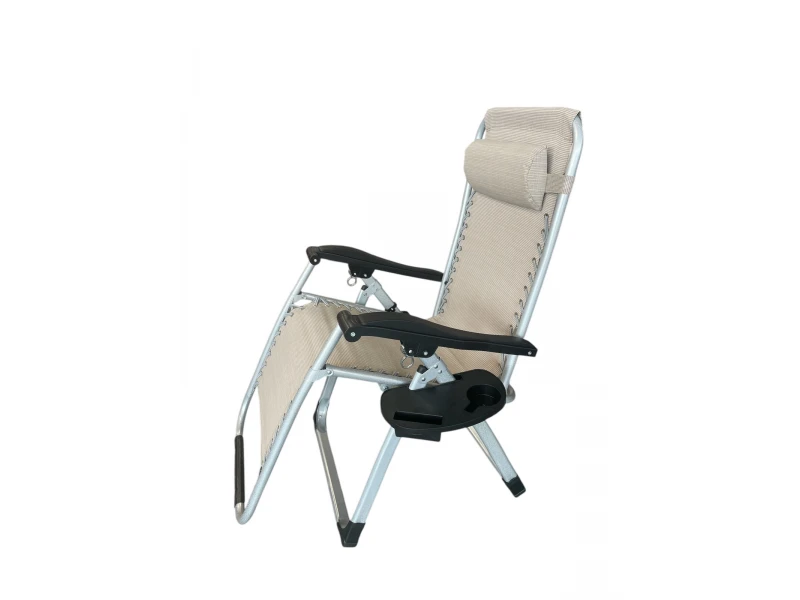 Сгъваем стол / шезлонг + възглавница и поставка за смартфон и напитки
