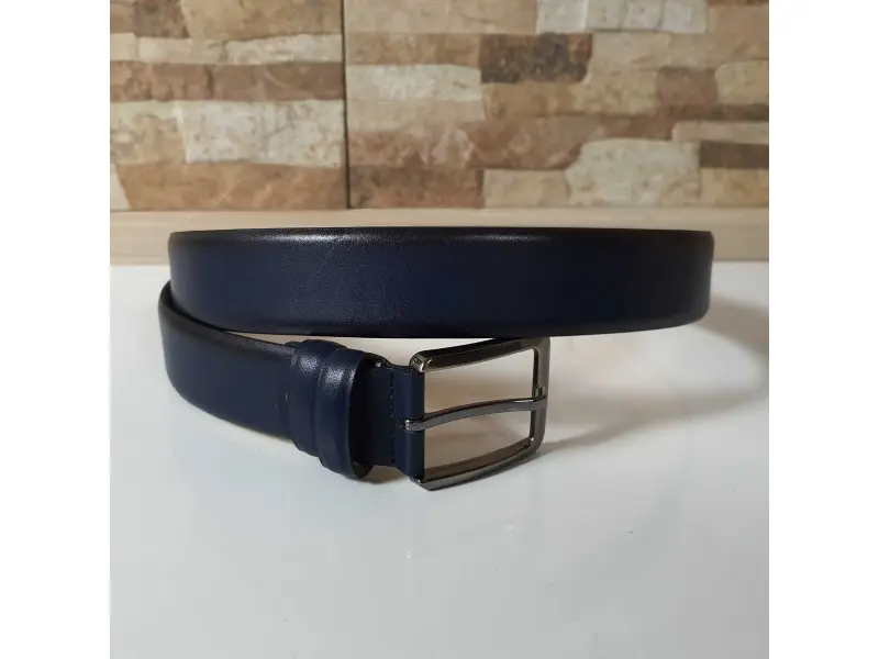 Мъжки колан от качествена естествена телешка кожа. Син колан с метална тока, подходящ за дънки и панталони с възможност за лесно скъсаване.