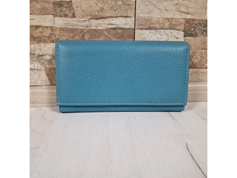 Голямо дамско портмоне - Дамско портмоне от естествена кожа. - Закопчаване с копче тик-так. - Отделения за карти. - Отделения за банкноти. - Монетник с щипка. - Вътрешно отделение с цип.