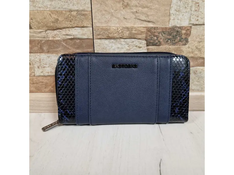 Синьо портмоне - Lonito от еко кожа, внос от Гърция. Удобно и евтино дамско портмоне с място за карти, преграда за банкноти, монетник - ePazar.bg
