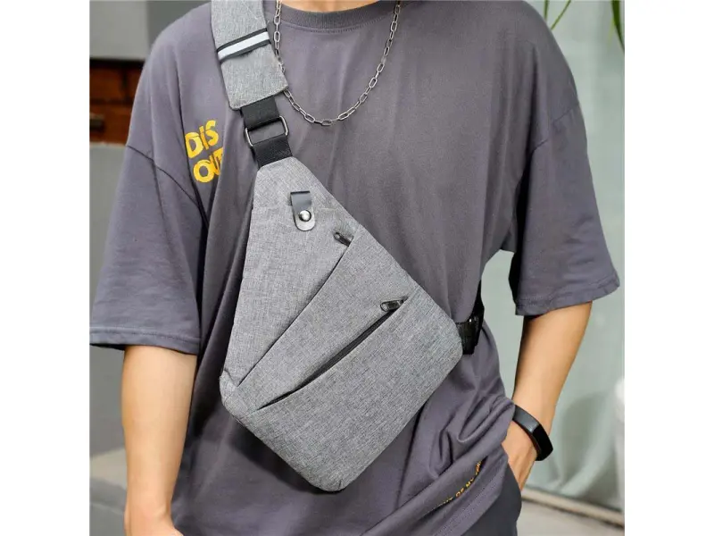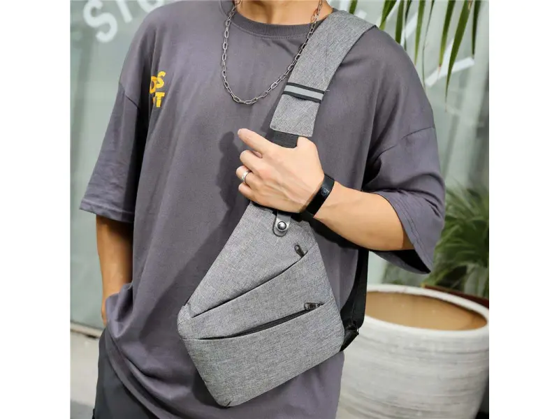 - Мъжка чанта, която може да се носи през гърди, рамо или гръб тип раница.