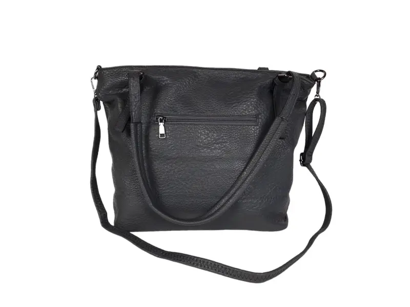 Ежедневна сива дамска чанта -Дамска чанта от еко кожа. -Едно основно отделение цип. -Вътрешна преграда с цип. -Място за телефон и ключове. -Вътрешно джобче с цип. -Задно джобче с цип. -Удобни презрамки. -Допълнителна регулираща се, дълга дръжка.