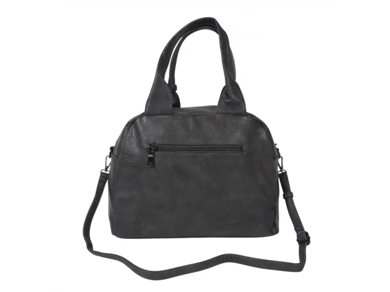 Сива ежедневна чанта - Дамска чанта от еко кожа. - Едно отделение затварящо се с цип. - Вътрешна преграда с цип. - Място за телефон и ключове. - Вътрешно джобче без цип. - Две вътрешни джобчета с цип. - Задно джобче с цип. - Удобни презрамки. - Допълнителна дълга дръжка.