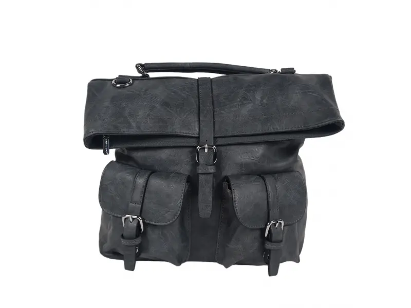 Дамска раница с удобно разпределение - Дамска раница от еко кожа. - Едно голямо отделение с цип и магнитно закопчаване. - Малко вътрешно джобче с цип. - Отделение за телефон и ключове. - Преден джоб с цип. - Два предни джоба с магнитно закопчаване. - Заден джоб с цип. - Удобна дръжка за носене. - Регулиращи се презрамки.