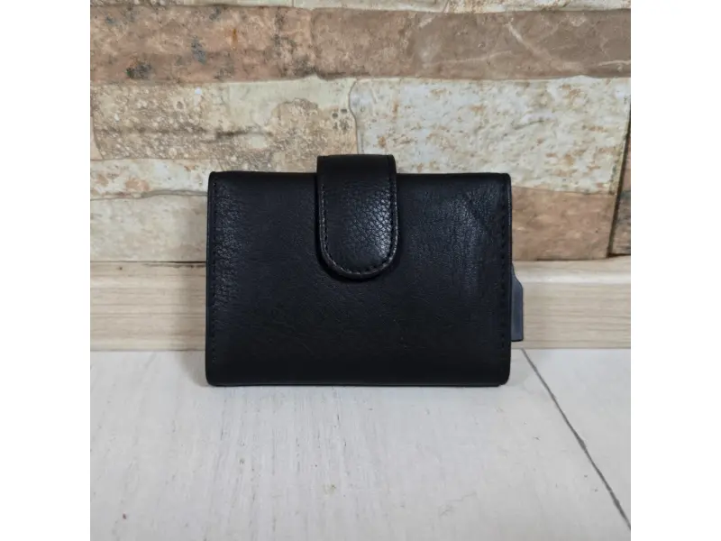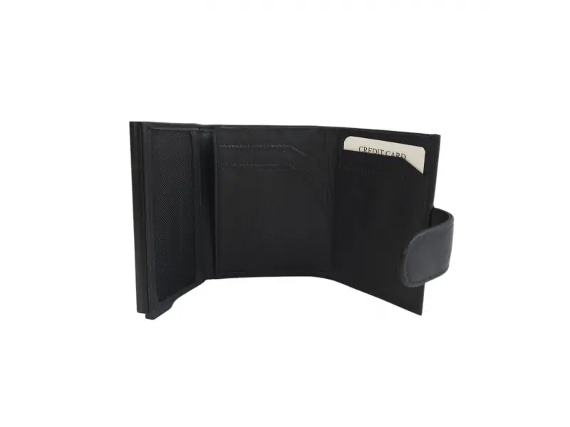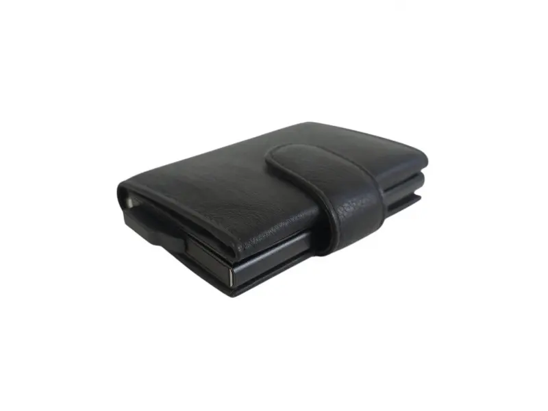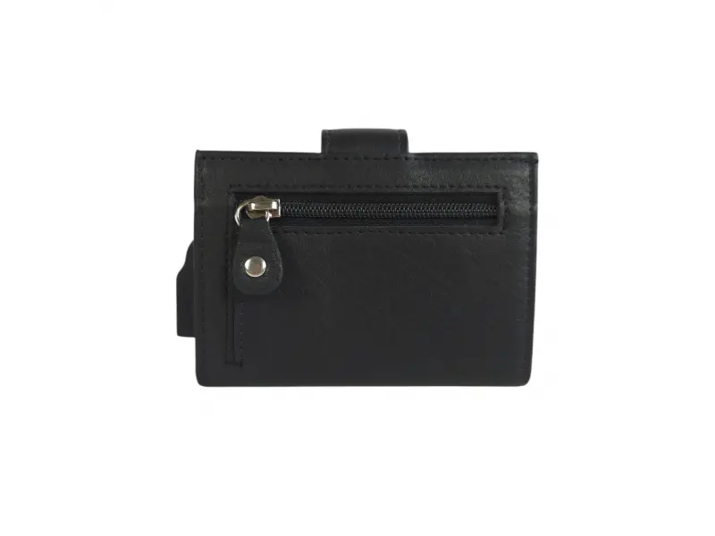Стилен автоматичен държач за карти - Автоматичен държач за карти от естествена кожа. - Алуминиева сплав с автоматично изваждане на карти. - Отделение за карти и лични документи. - Заден джоб с цип.