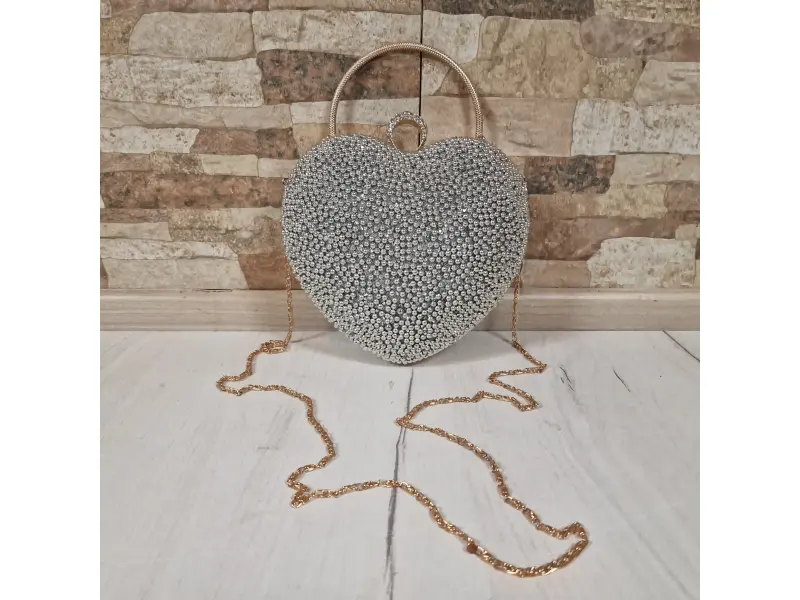 Сребърна чанта с перли - сърце| Дамски чанти (ePazar.bg)