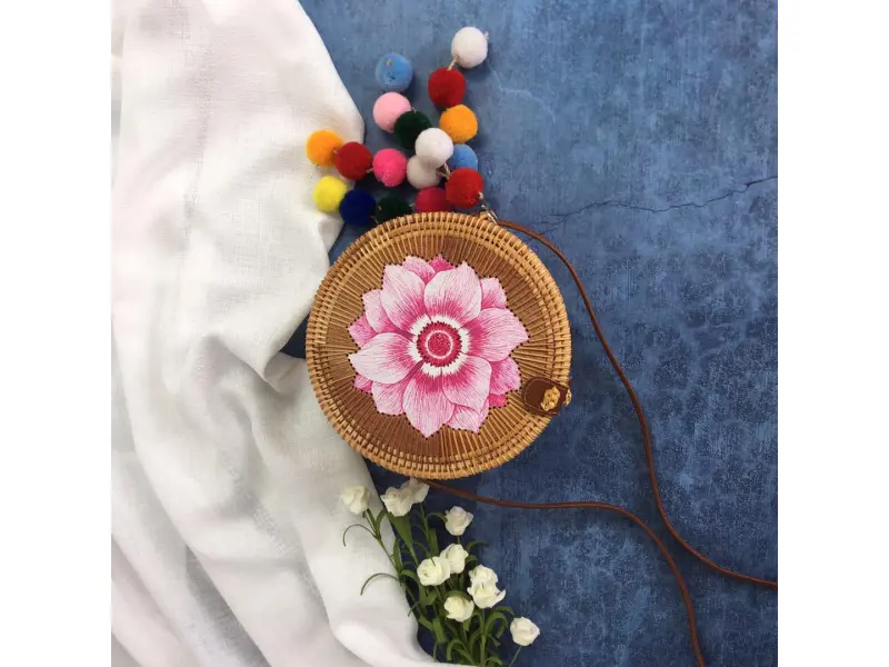 Стилна дамска чанта от ратан - цвете
