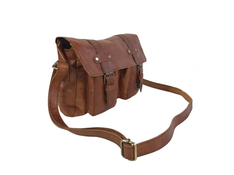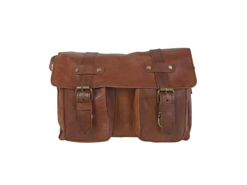Здрава мъжка чанта от естествена кожа в интересен кафяв цвят и затваряне с метални катарами и механизъм. Качествена мъжка чанта, която е ръчна изработка внос от Мароко.