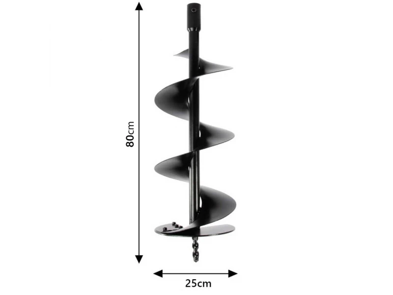 Свредло за моторен бензинов свредел с размери 250х800мм – перфектно за пробиване на дълбоки дупки в различни типове почва. Идеално за градинарство, строителство и озеленяване. Издържливо и ефективно, това свредло е незаменимо за вашите проекти!