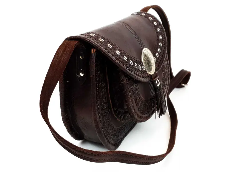 Ръчно изработена дамска чанта от качествена естествена кожа. Дамска чанта с едно голямо вътрешно отделение и предно джобче. Кафява чанта с дълга регулираща се дръжка.