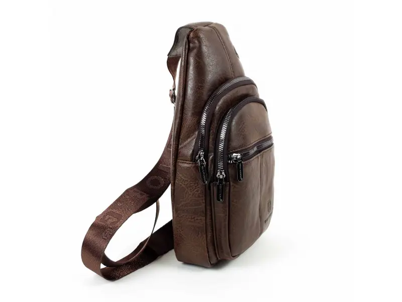 Тъмно кафява мъжка чанта - Brian. Качествена мъжка чанта от еко кожа за през гърди или рамо. Тъмно кафява мъжка чанта с много отделения и качествени ципове - ePazar.bg