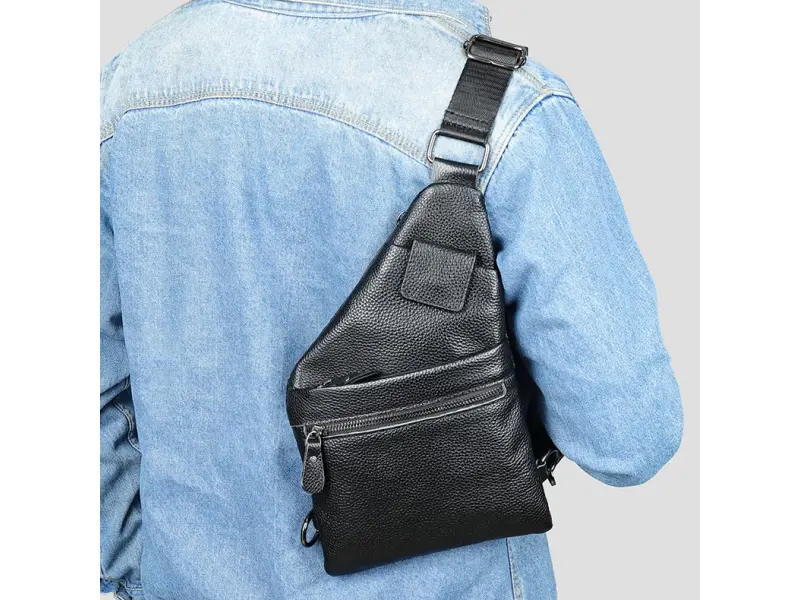 - Мъжка чанта, която може да се носи през гърди, рамо или гръб тип раница.