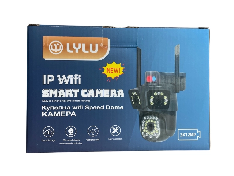Осигурете си спокойствие и контрол с тройната външна WiFi камера 12MP с три обектива. Монтирайте лесно и управлявайте дистанционно – сигурността вече е във ваши ръце! 🔒