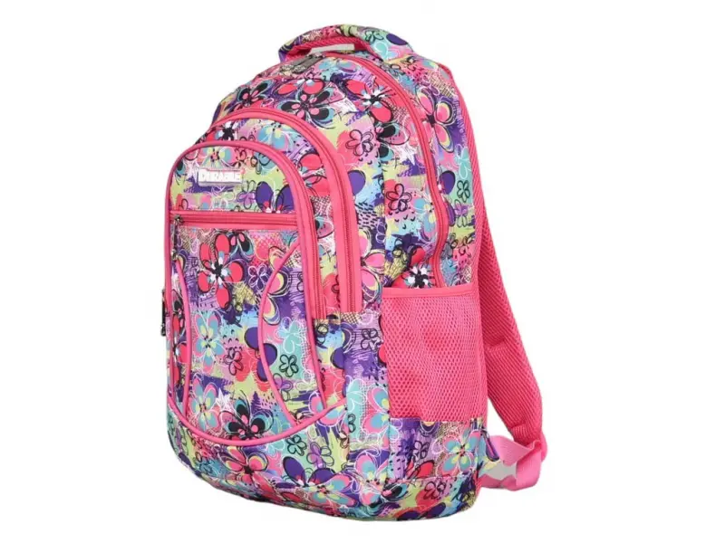 Раница за момиче подходяща за училище - Голяма раница за училище или спорт. - Едно основно отделение с цип. - Три предни джоба с цип. - Странични отделения за бутилки. - Дръжка за носене в ръка. - Регулиращи се презрамки.