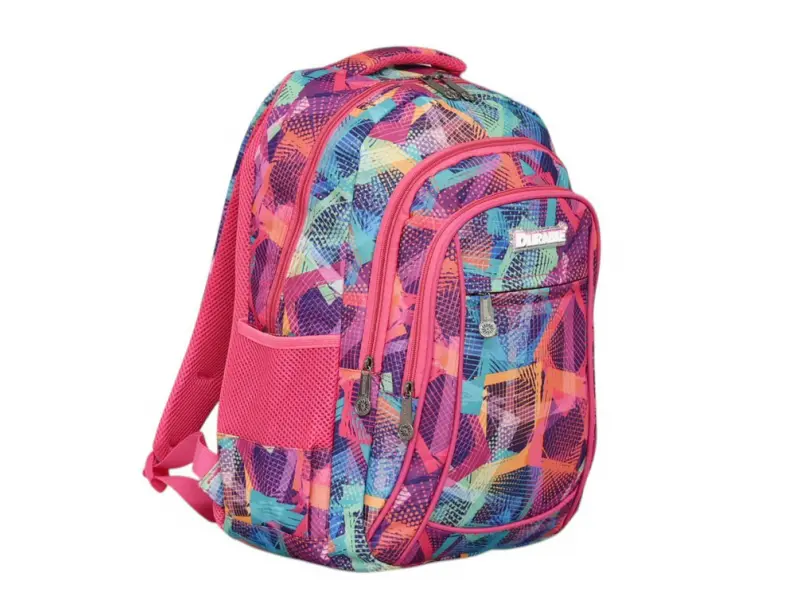 Ученическа раница с удобен гръб - Красива раница за училище или спорт. - Едно основно отделение с цип. - Три предни джоба с цип. - Странични отделения за бутилки. - Дръжка за носене в ръка. - Регулиращи се презрамки.
