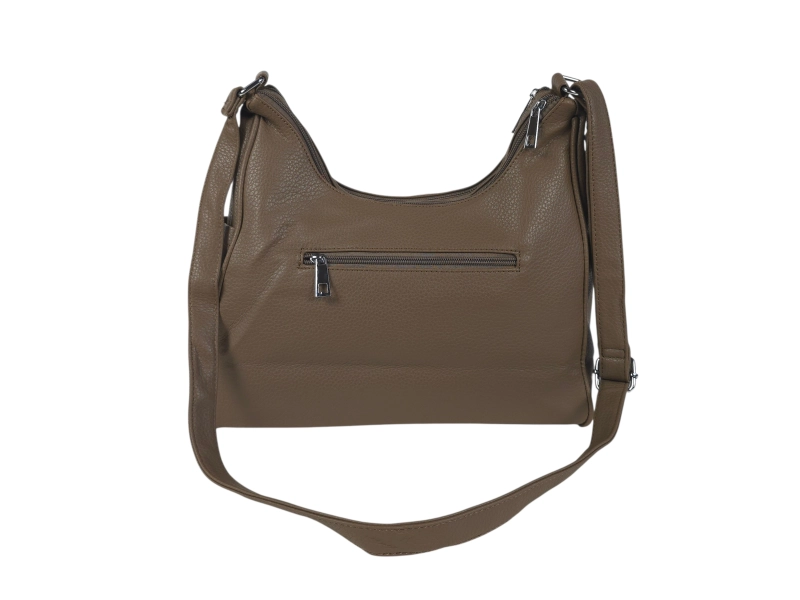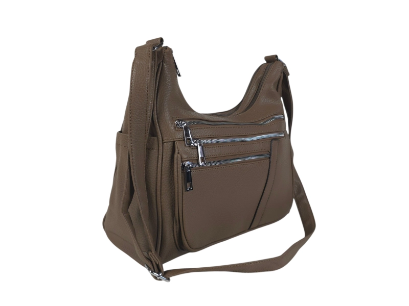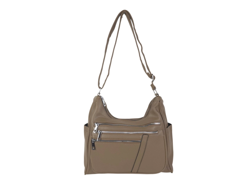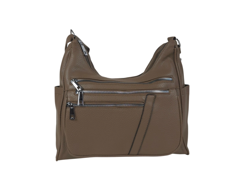 Ежедневна дамска чанта - Дамска чанта от еко кожа. - Две основни отделения с цип - Малък вътрешен джоб с цип. - Три предни джоба с цип. - Заден джоб с цип. - Два странични джоба. - Дълга регулираща се дръжка.