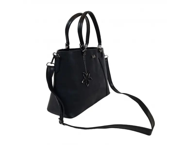 Дамска чанта произведена в България - Черна дамска чанта. - Чанта от еко кожа. - Едно основно отделение затварящо се с цип. - Вътрешна преграда с цип. - Място за телефон и ключове. - Вътрешно джобче с цип. - Удобни дръжки за носене. - Дълга реглираща се дръжки.