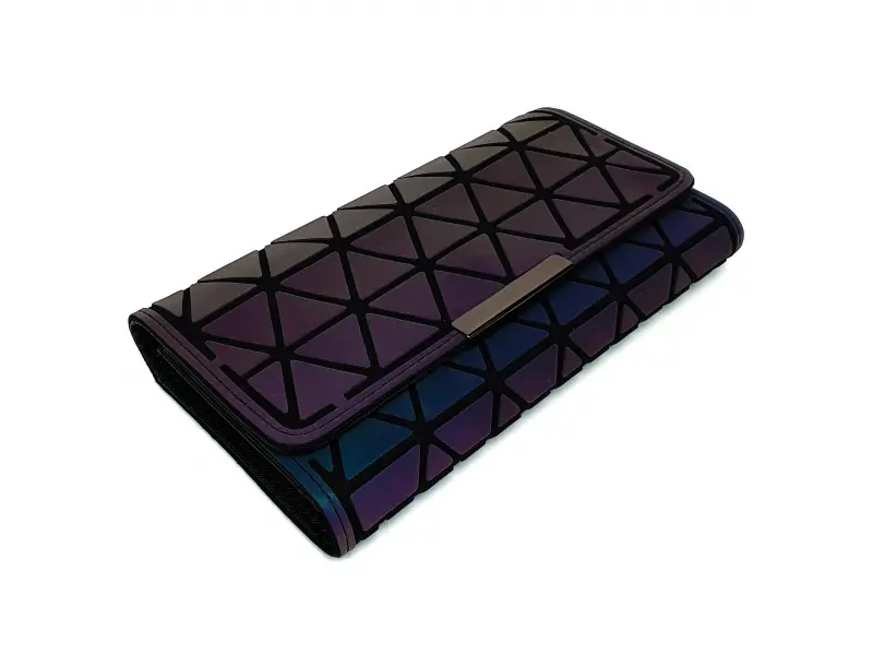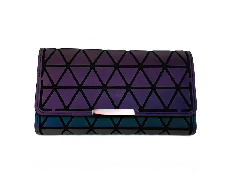 Нов модел дамско портмоне в цвят хамелеон с удобно вътрешно разпределение. Хамелеоново портмоне с много слотове за карти и документи, отделение за монети и преграда за банкноти.