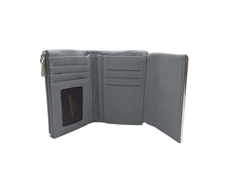Има отделения за карти, отделение за банкноти и джоб за монети с цип.
