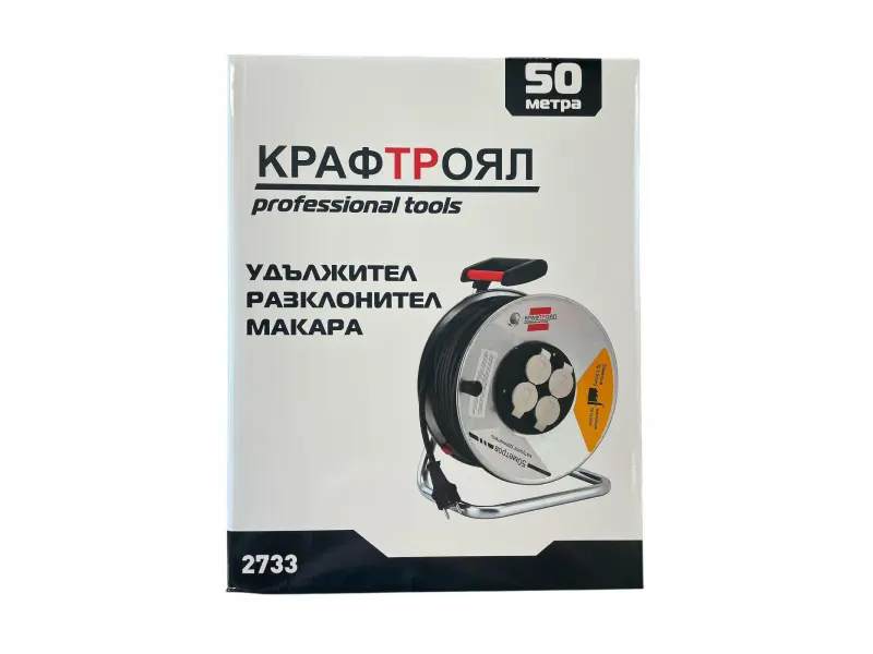 Удължител / разклонител / Макара 50 метра с 4 гнезда – KrafTRoyal