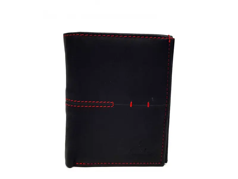 Вертикален мъжки портфейл с червено. Мъжки портфейл от естествена кожа с червен конец. Качествен мъжки портфейл с удобно разпределение от ePazar.bg.