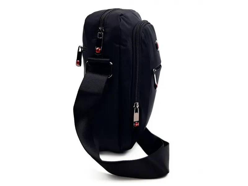 Качествена мъжка чанта от здрава материя. Мъжка чанта за през рамо за ежедневието в среден размер с едно голямо отделение , среден джоб , преден и заден джоб. Качествена полиестър , регулираща се дръжка.