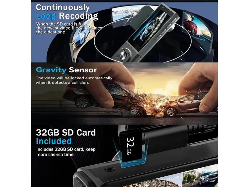 Една от най-важните функции на този модел е G-сензорът , който разпознава удар или рязко движение и автоматично запазва записа , така че да не бъде изтрит при цикличното презаписване. Това е ключово при инциденти и за доказателства на пътя.