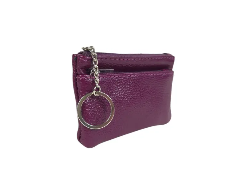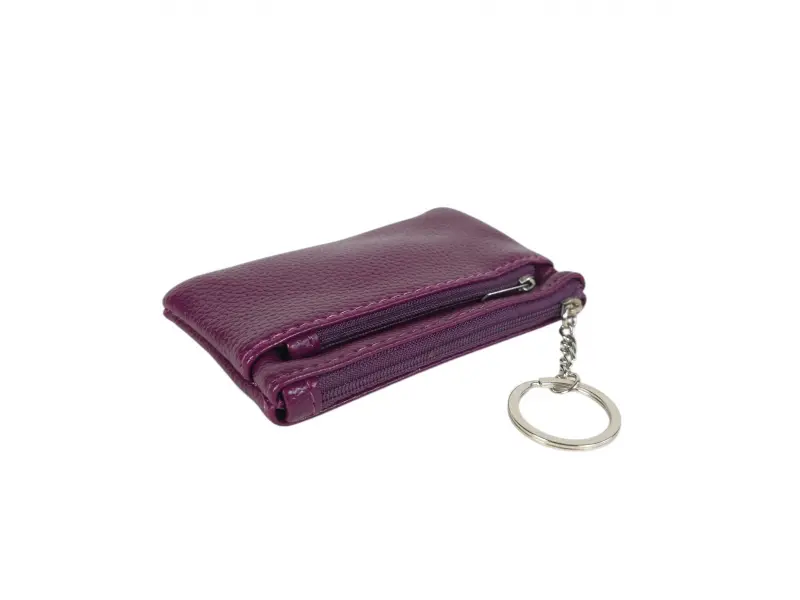 Качествен ключодържател във виолетов цвят - Портмоне - ключодържател от естествена кожа. - Отделение за банкноти. - Отделение за монети. - Ринг за закачане на ключове.