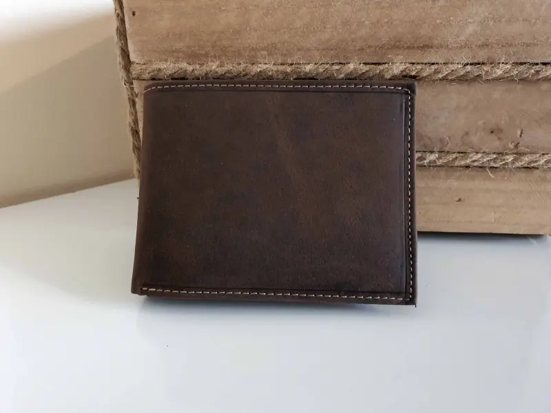 Здрав мъжки портфейл - набук. Много здрав мъжки портфейл от естествена кожа. Ръчна обработка кафяв портфейл с удобно разпределение от ePazar.bg.
