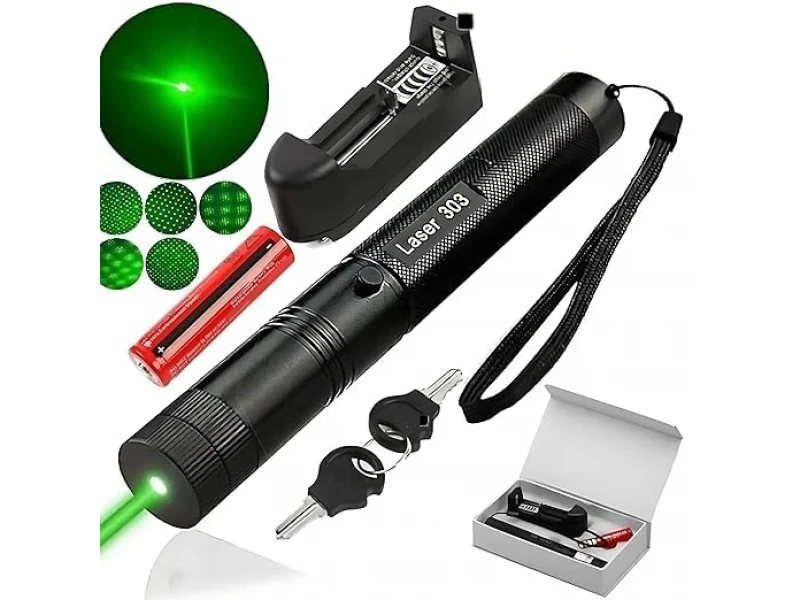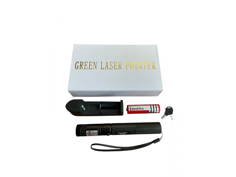 Спецификации:Това е един полезен артикул за фотографи, художници, астрономи, учители, студенти, екскурзоводи, спасители, строителни инженери и работници, учени, охрана. При разходка на домашни любимци (кучетата и котките обичат преследването на лазерната точка)Артикула представлява зелен лазер със система за забавление. Предната част е конструирана по начин да може да се върти приставка накрая на лазера и да пречупва светлината в множество движещи се точки. При въртенето на приставката се получава страхотен светлинен ефект - подобен на ефектите в дискотека. Приставката може да бъде премахната и артикула да се ползва с насочена светлина.Лъча се наблюдава по цялото протежение и може да се ползва за показване на отдалечени обекти. Дължината на лъча е с дължина до 8 км. Солидна алуминиева изработка, лазера е снабден и със заключваща система в задния край.Заключващата система е предвидена в случаите в които искате да предотвратите достъп на не оторизирани лица, деца и т.н. Ключалката е с две ключета.Артикула е захранен с мощна презареждаема батерия модел 18650/3800mAh 3.7V. В комплекта има включено зарядно устройство за акумулаторната батерия, зареждането става на 220 волта, от електрическата мрежа.Наличие на удобна каишка за носенеДължина на вълната: 532 nm.Обхват на лазера: 1000 метра.Батерия: 18650 Li-Ion Батерия.Работно напрежение на батерията: 3.7-4,2V.Заключващ предпазен механизъм .Размер: Дължина 160 мм. Дебелина 2.3 мм. Тегло на целия комплект: 320 гр.Предупреждение: Да не се свети към очите на други хора, може да доведе до сериозни увреждания на зрението. Да се пази далеч от деца. Комплекта включва:1 бр. Лазер HL-303.1 бр. Зарядно за батерии.1 бр. Акумулаторна батерия модел 18650.2 бр. Ключове за заключване.